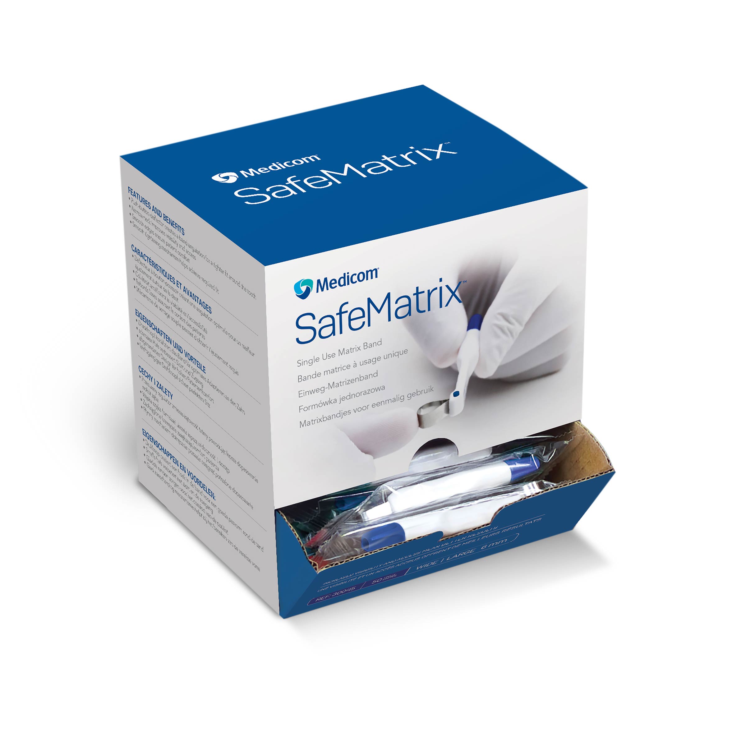 - Bande matrice universelle – utilisable pour toutes les cavités MO / OD / MOD ou les reconstitutions de cuspides