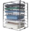 Hält z.B. 6 Trays oder 3 Wannen mit Deckeln