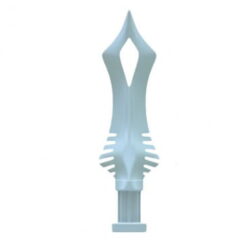 Eine diamantförmige Aussparung in der Spitze des sanduhrförmigen Diamond Wedge Keils klappt beim Platzieren im Zwischenraum zusammen und öffnet sich wieder beim Herauskommen auf der anderen Seite. Dies verringert den Druck beim Einführen und optimiert den Sitz der Matrize.