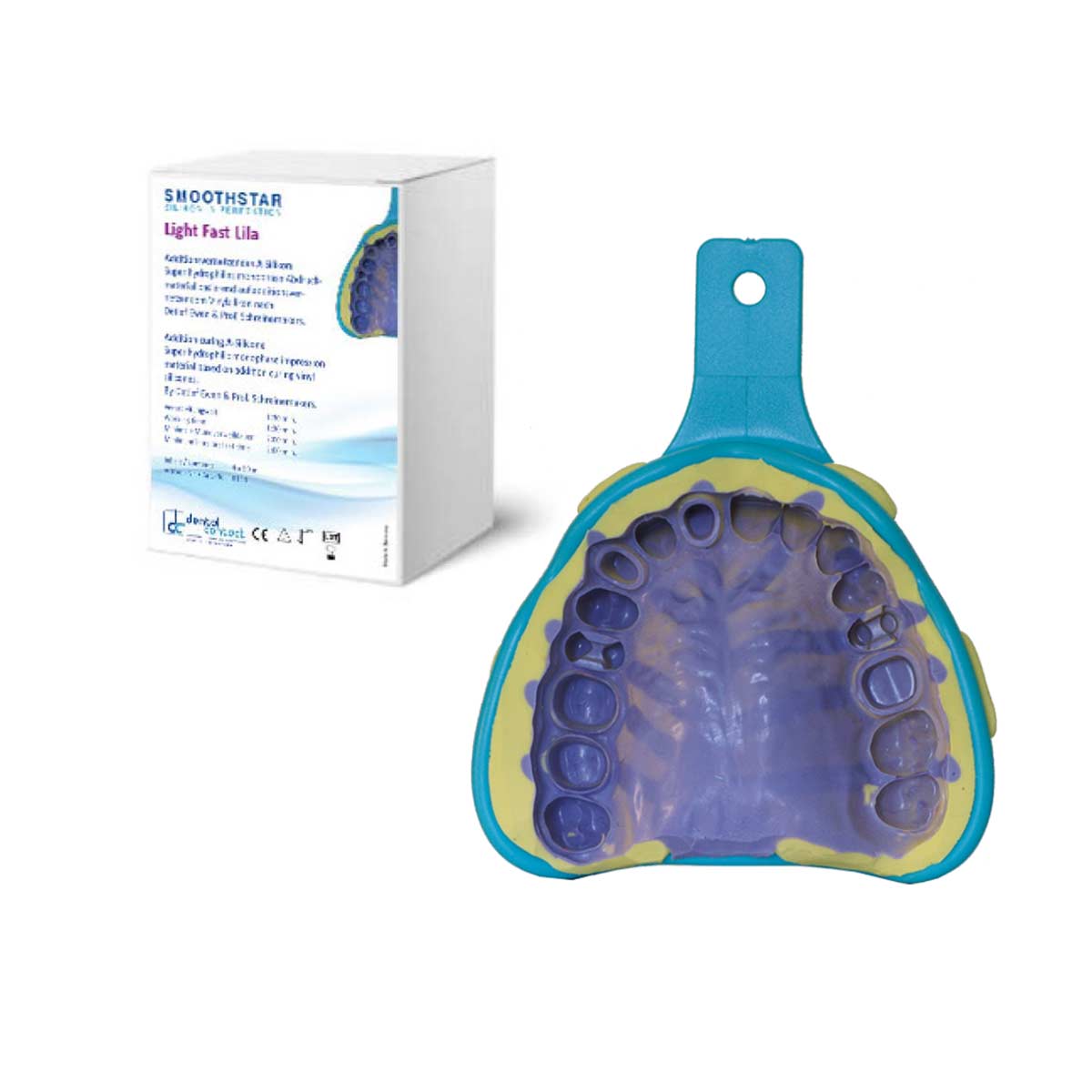 SMOOTHSTAR Light Fast lila ist ein fein fließendes mittelviskoses Korrekturmaterial mit sehr hohen hydrophilen, thixotropen, reißfesten und elastischen Eigenschaften, das eine schnelle Verarbeitungszeit und eine schnelle Mundverweildauer besitzt. Durch seine speziell eingestellte Viskosität ist diese Korrekturmasse für alle Abformtechniken sehr gut geeignet.